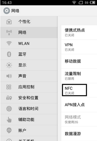 第一步:點擊設置——網絡,然后點擊NFC,就可以成功開啟,魅族MX3是默認開啟的,如果你不需要用到這個功能,再點擊一次就可以關閉了。