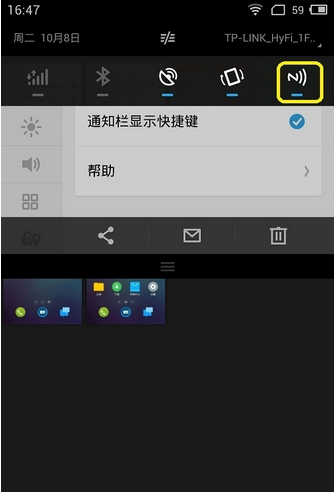 第四步:如果你經常使用NFC,你也可以將NFC放到通知欄,以便設置開關和傳送。