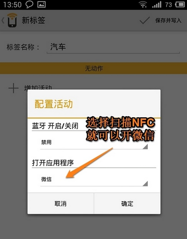 點(diǎn)擊“汽車”,我們可以增加一個(gè)活動(dòng),比如小編選擇打開的應(yīng)用程序是“微信”。